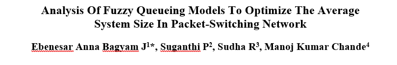 • Ebenesar Anna Bagyam J, Suganthi P, Sudha R, Manoj Kumar Chande